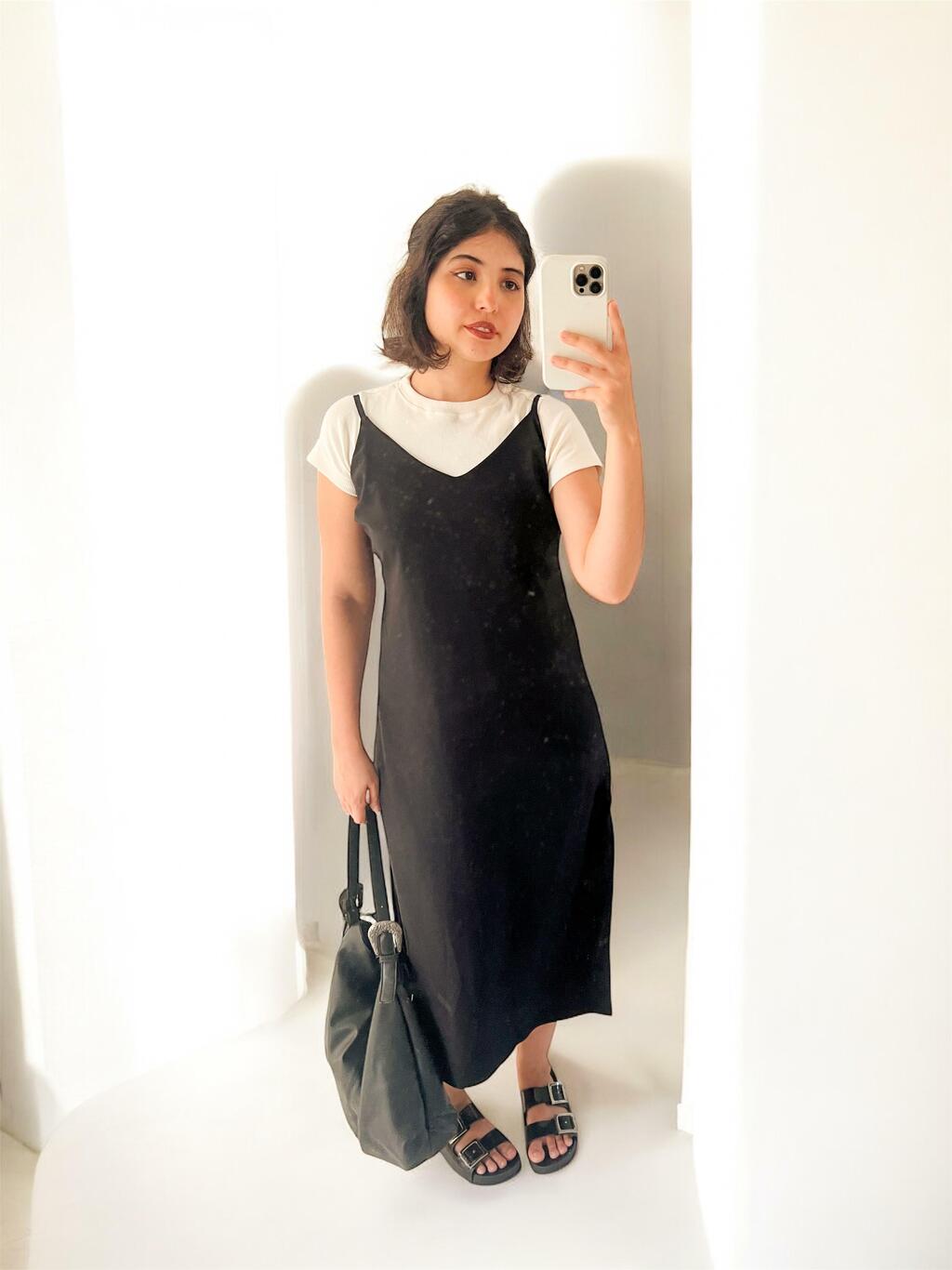 esse vestido é aquele básico versátil que não pode faltar no seu guarda-roupa. ele é soltinho, mas acinturado, possui duas fendas laterais que garantem liberdade de movimento, é forrado e tem as costas reguláveis para você ajustar do jeito que preferir. sugestão de uso: pra um look mais vintage e cool, coloque uma blusa/babytee por baixo dele, fica tudo!